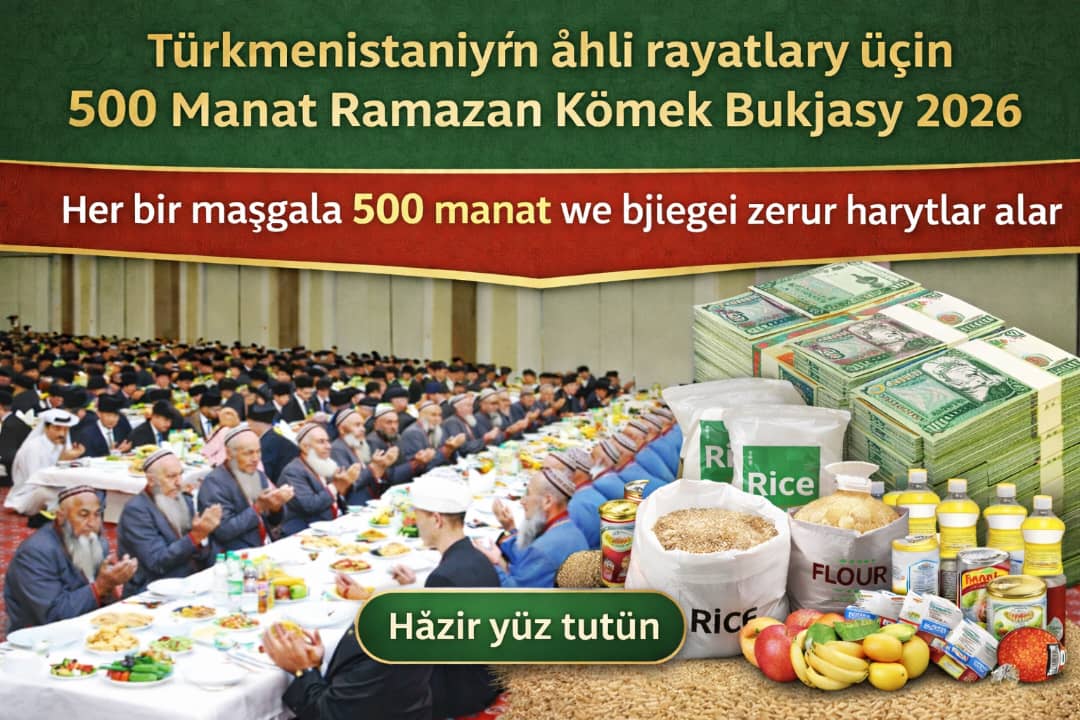Hoş geldiňiz 2026-njy ýylyň 500 MANATLYK RAMAZAN ÝARDAM PAKETI. Şu ýylky Ramazanda mukaddes aýda bedenleri we ruhlary iýmitlendirmek üçin tüwi, un, nahar ýagy, ýasmyk, şeker, çaý we hurma ýaly zerur önümler üns bilen taýýarlanýar we 500 manat pul baýragy berilýär.